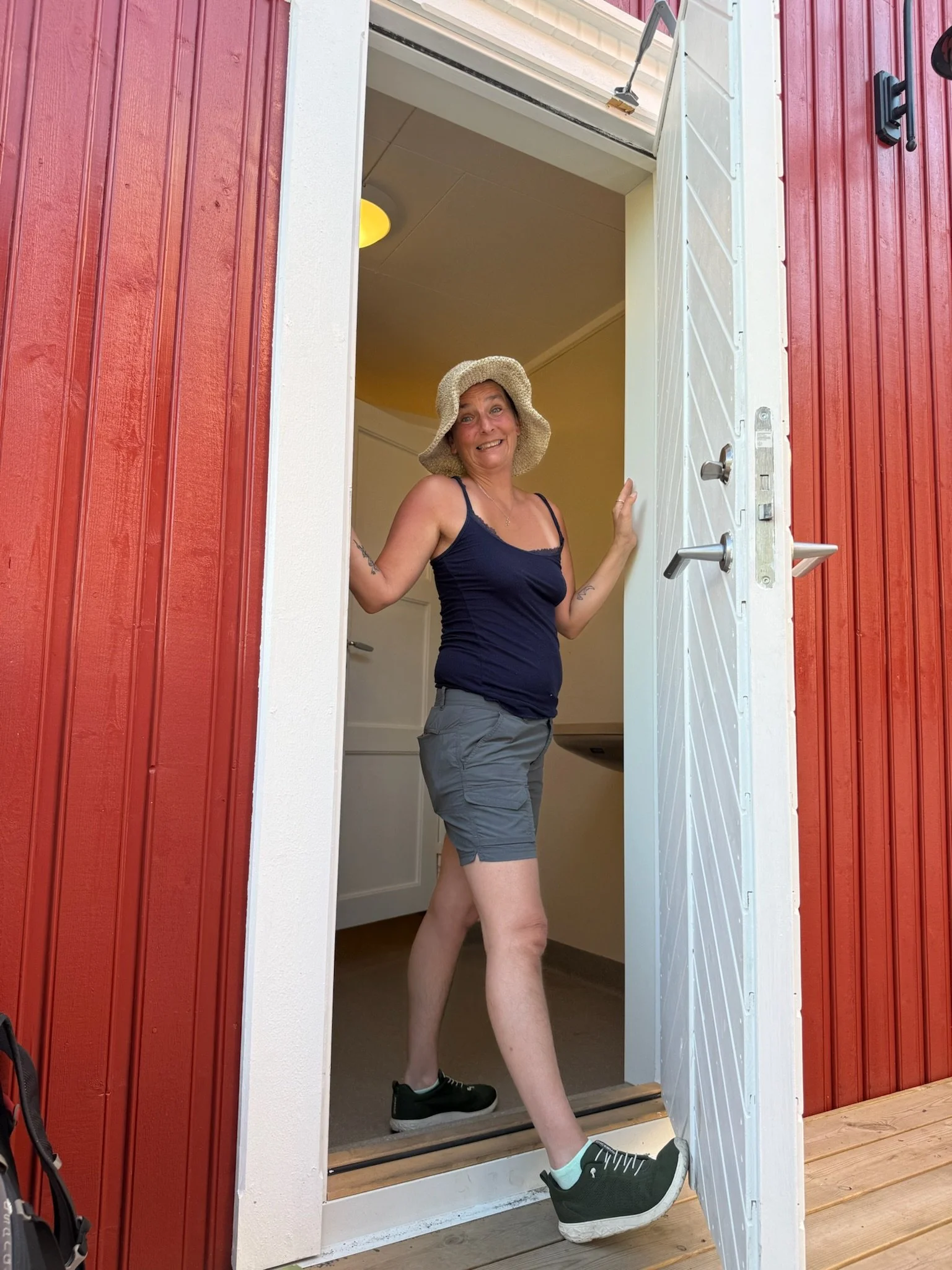 We disembarked and hurried across the island to the bathroom. The moment had arrived – would we open the door to emotional devastation or gleeful delight? I climbed the wooden stairs slowly, placed my hand upon the door and paused, suddenly afraid to find the answer. Emma, never one to enjoy dramatic pauses like myself, exclaimed “Open the door, Mom!” I eased it open, peeking inside……...and there it was! The lovely hemp hat! My salvation! An enormous smile broke over my face as I reached for the hat and joyfully placed it atop my head; a happy ending to yet another day in the life of our Norwegian adventure.